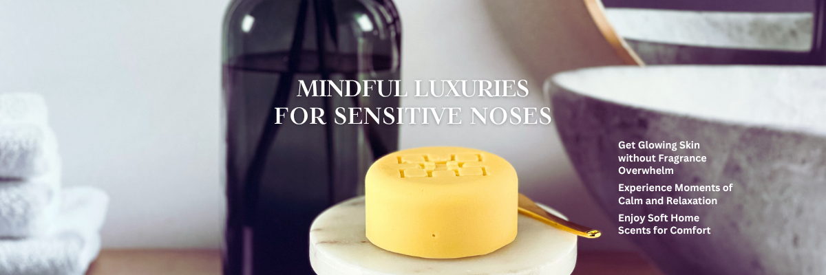 "Crafted for sensitive noses, our bodycare and home scents bring comfort, calm, and a touch of luxury - without the fragrance overwhelm."